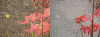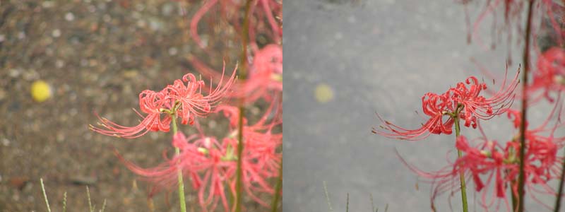 左の写真群は背景が川,右の写真群は川の中に落ちた花です.