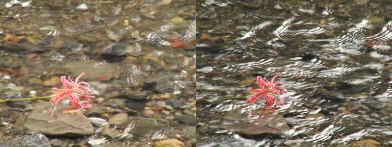 どちらも左側が効果最大,右側が逆効果最大.水面の反射の有無は大きいですね.