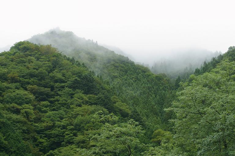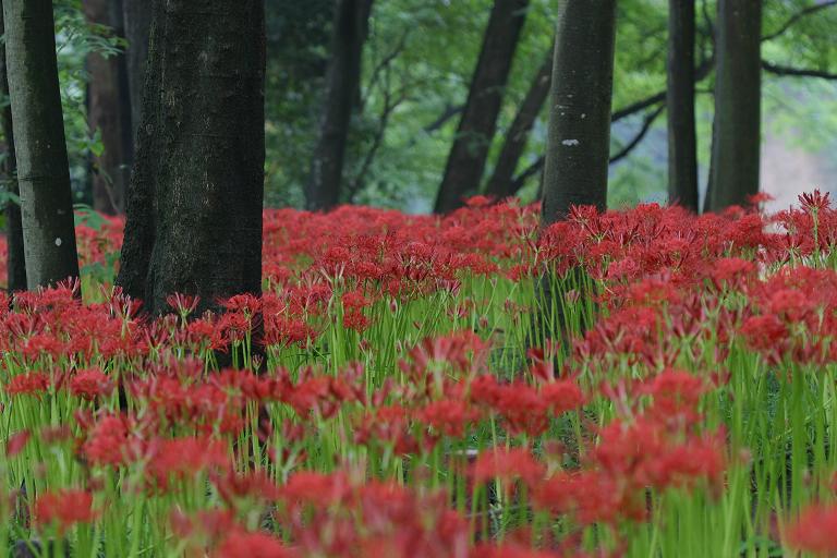 さて、巾着田の後はいつもの紅葉コースの下見となりました。中がすべてを象徴する絵のようです。わかりにくいですが、どの山も左斜面が茶けてます。風でやられたのでしょうか。でも、まぁいつものコースを見る限り(両脇)は、大丈夫かなぁと……。