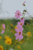 コスモス、マリーゴールド、そして……すぐそこを歩いていたカルガモさん。