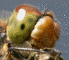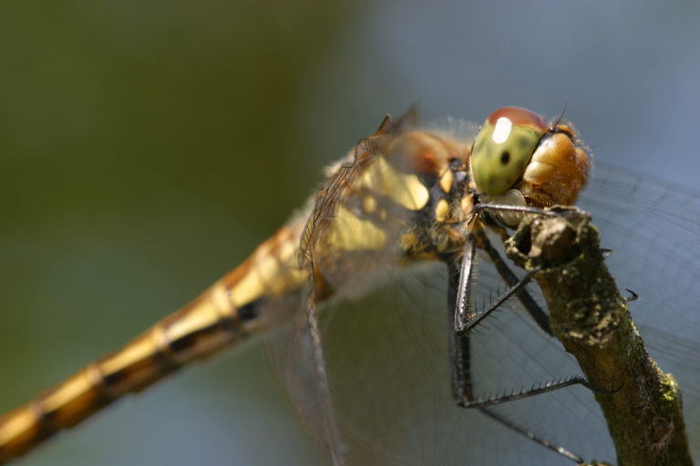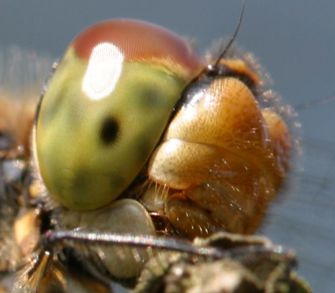 同レンズによるトンボどあっぷ。このサイズではわかりませんが、元画像では両方とも複眼の縞が見えたりしていました。……とんでもね(-_-;)。なお、右の絵のピクセル等倍画像は一番下に載せました