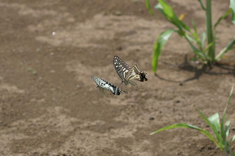 これはある日の昼休み、近所で撮ったものです。2羽のアゲハ。これも50%縮小トリミングしてます