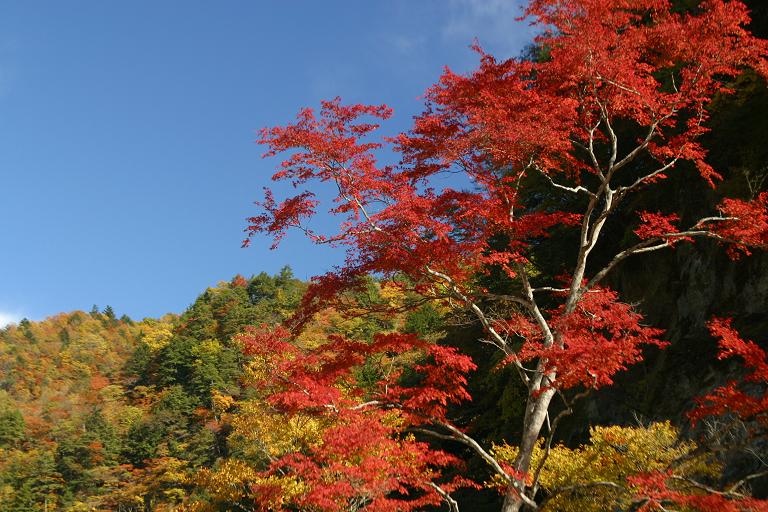 ダム近くの木々は真っ赤で綺麗だったのですが、そこに戻る時点では息切れ、ほとんど撮らずに帰路に入ってしまいました(2002.11.17)。