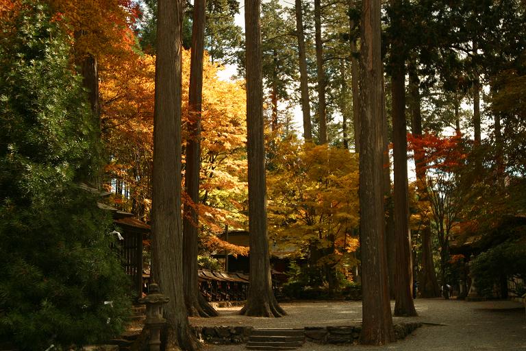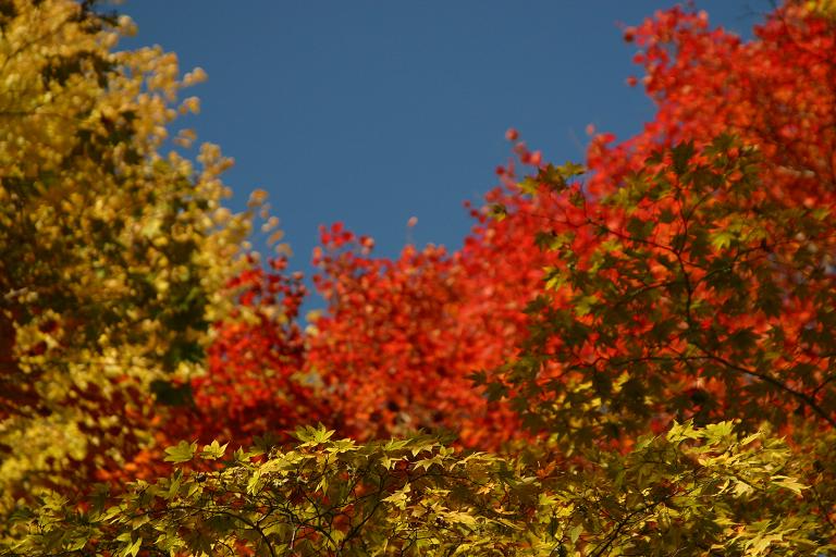 高山不動山門階段前の大紅葉。先は染まってて、幹付近はまだ緑という状況でした。来週だとどうなるんだろ?