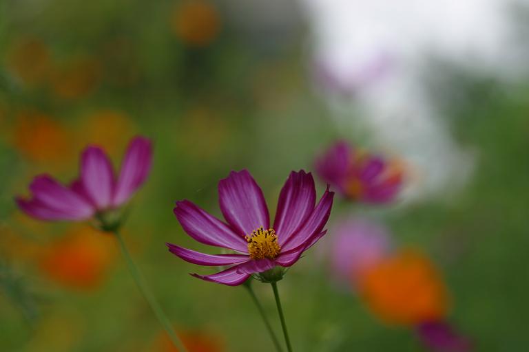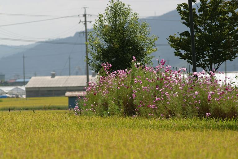 そこここには秋桜。稲もたわわに実ってました。
