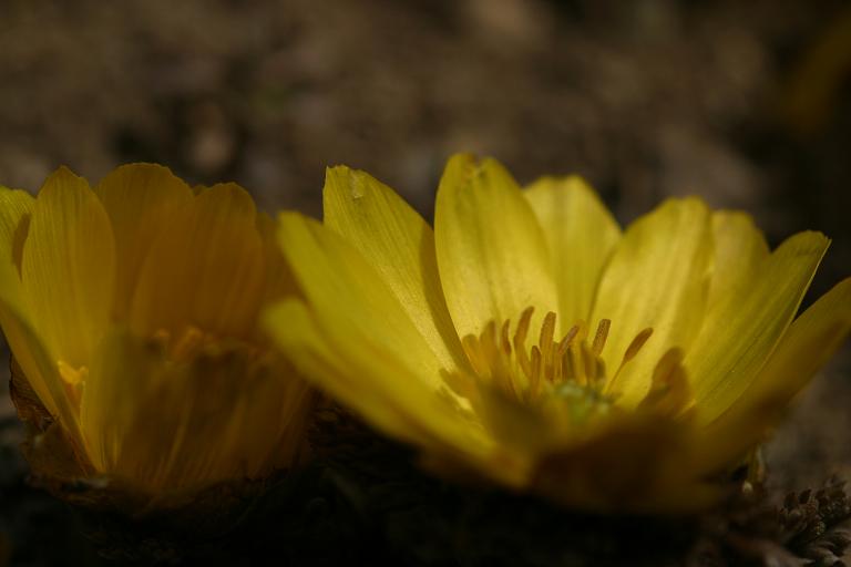 左の蝋梅に比べ、中の紅梅はまだ硬い蕾、でも福寿草は綺麗に咲いてました。