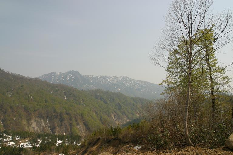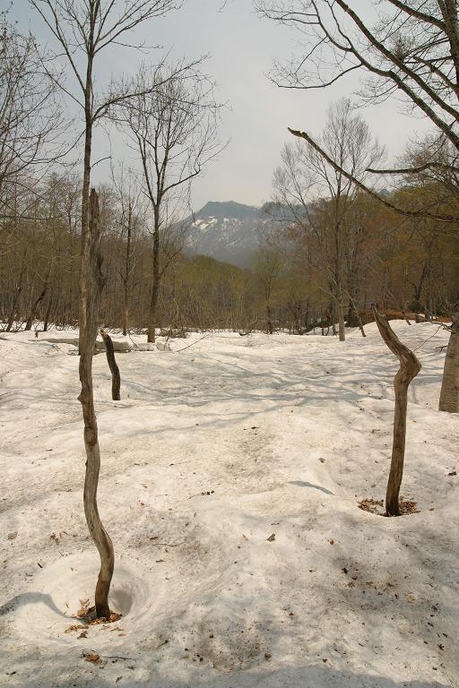 現地にて。残雪が多かったです。