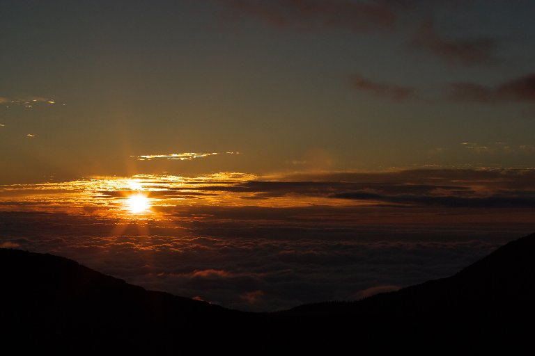 雲海に沈む太陽。夕食と時間が重なってしまったので十分撮れませんでした。返す返すも無念。