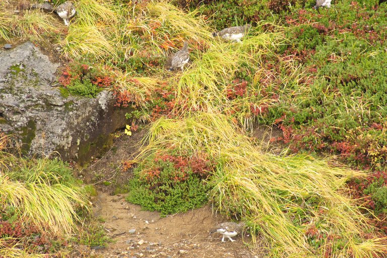 中はチングルマですね。赤が鮮やかでした。群生地ではまだ綿毛が開いていませんでしたが。右は……、自分は一体何を考えているんだろ、思うような写真ですね(笑)。イメージは湿原を潜る潜水艦、かな。