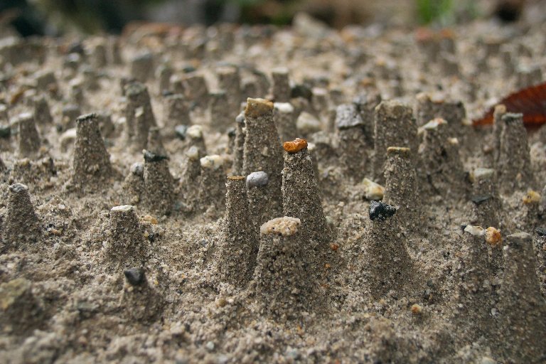 右、何日くらいでこうなるんでしょう?砂利の下の砂が雨で侵食された様子みたいでした。