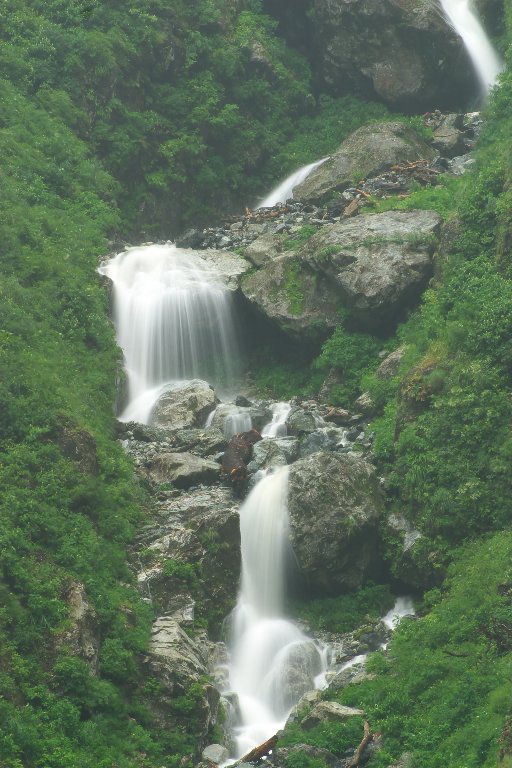 と、トロッコ列車を待つ間のカット。左の滝は雨のときだけ現れるそうです、が、水量は十分。大雨の結果でしょう。