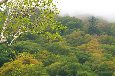 大観峰展望台から。左はそのすぐ脇を取った一枚です。雨の中の撮影ですが視界は良好で鮮やかでした。黒部湖の方向望むと右のような感じです。雨中だけに黄色にこくが乗って綺麗ですが紅葉としてはまだまだ。