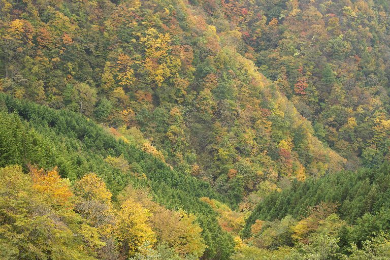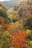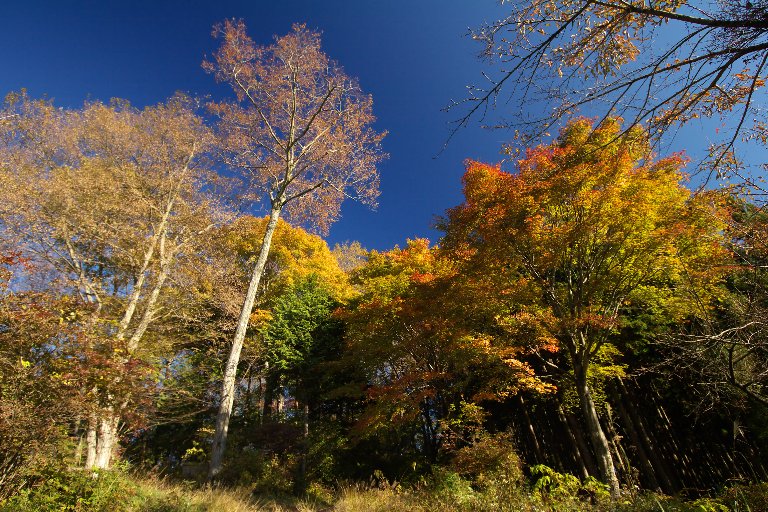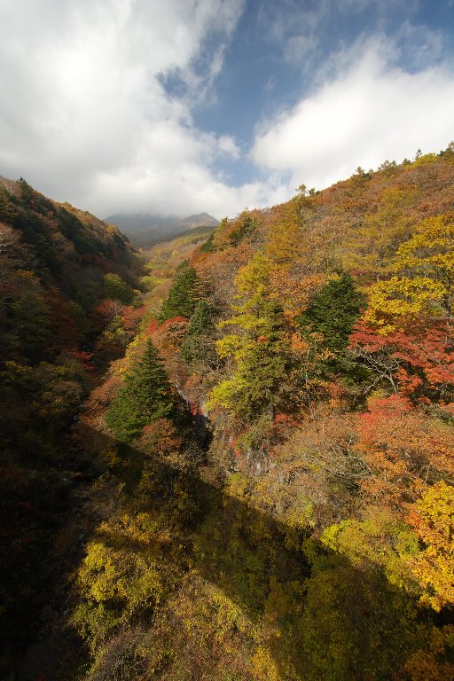 さておき今回は、手元に残っていたあずさ回数券(小淵沢往復)と、先日導入した折りたたみ自転車との相談で、野辺山〜清里〜小淵沢のサイクリングとすることにしました。川俣渓谷の紅葉が盛りだというので、目的地を川俣大橋と吐竜の滝として。