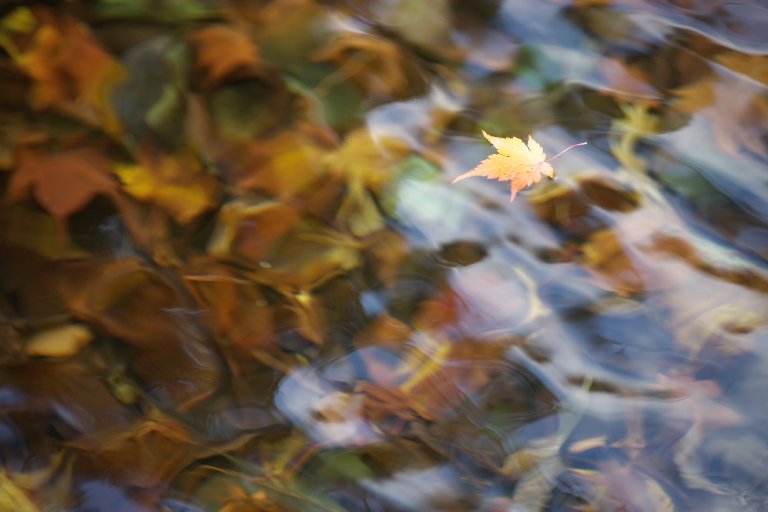 この葉が流れているのを見つけて何枚か狙って、光加減とかが一番よかったものです。とってもお気に入り。