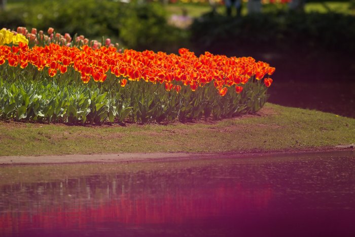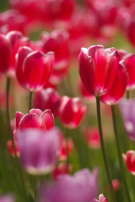 チューリップはねぇ、咲いている風景の人工的な整然さが鼻につくので、あまり撮らないのですが、絵葉書的な写真にはなるんですよねぇ。うーん、釈然としない。
