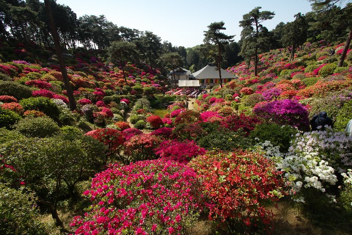 ツツジの谷間に埋もれた茶室というイメージでしょうか。これもノーファインダー。しまった、PL効かしそこねた。
