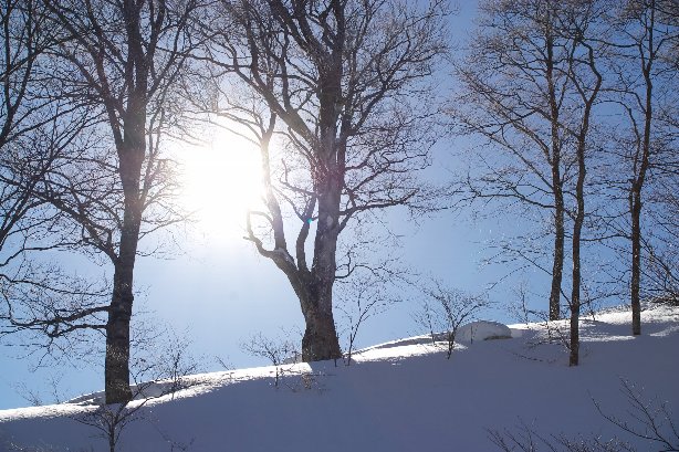右は、風花の舞うゲレンデ、遠景のおぼろ加減が楽しかったです。