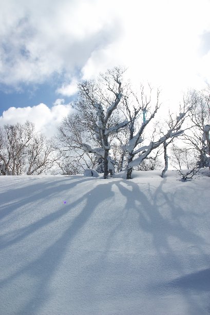 このあたりを滑っているときは平和だったなぁ。午後に200万ダラーに行ってからが運のつき。深雪に思いっきり戯れることになってしまいまして(^_^;)。そしたら雪も降り出して、その後は吹雪に。まぁ、こんだけ楽しんだし、戯れたのは深雪だったおかげで、こけたところでダメージないし。よしとしよう。