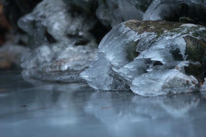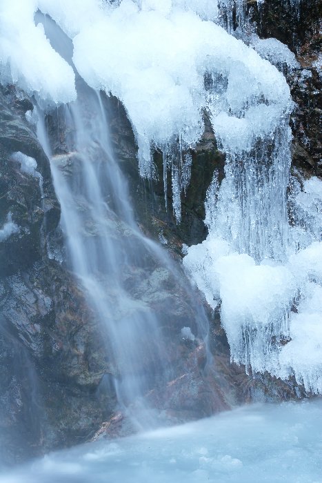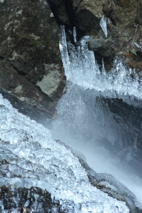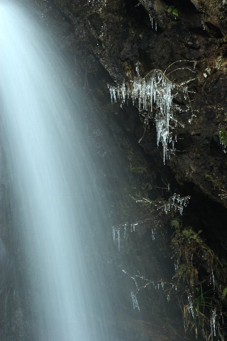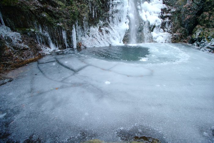 滝壺の脇の氷、なんか、印象的だったなぁ、と。跳ねる飛沫が凍ったんでしょうねぇ。