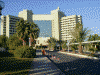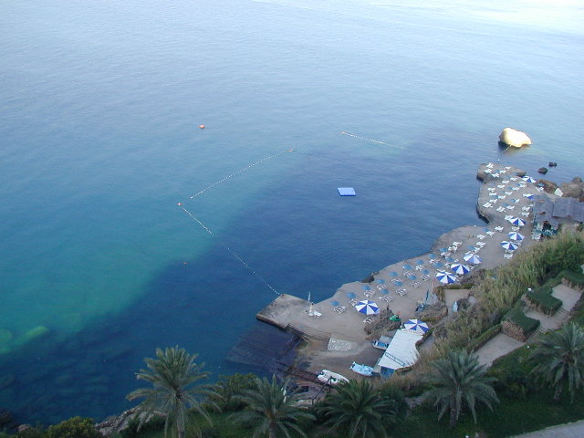 さて,泊まったホテルを正面から見た様子(最左),なかなか豪華なリゾートホテルでした.しかも泊まったのは10階(トルコ式に数えると9階),そこからの眺めもなかなかで(中左).ちなみにこのホテル,プライベートビーチなんてものまでもってます(中右).そこからホテルを見ると,なんか威圧感がすごい(最右).