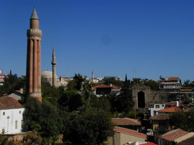 さて,アンタルヤの観光名所の羅列?です.フドゥルルックの塔(最左),時計塔(中左),イブリミナーレ(中右),アタテュルクの像(最右).フドゥルルックの塔はいかにもな砦.脇には大砲なんて置いてあったりもしましたが,でも脇には食堂やお土産屋さん.やはり観光名所.時計塔は街の中心,脇には商店街.イブリミナーレは,ガイドブックによればセルジューク朝時代の建造物だそうな.綺麗な塔です,あ,もちろん手前の塔です.アタテュルクの像は……よくわからない.私に感動はなかったし.