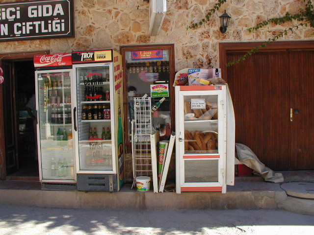 ハドリアヌス門を抜けると旧市街.古い町並みに,店があります(右).まわりが高層アパートばかりなので,世界が変わったかのように感じたり.