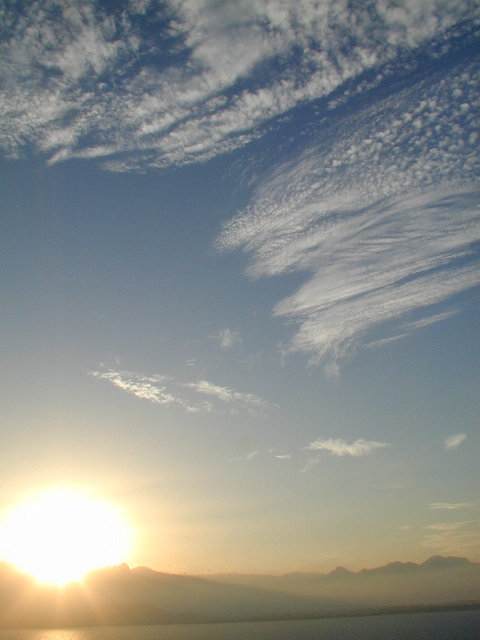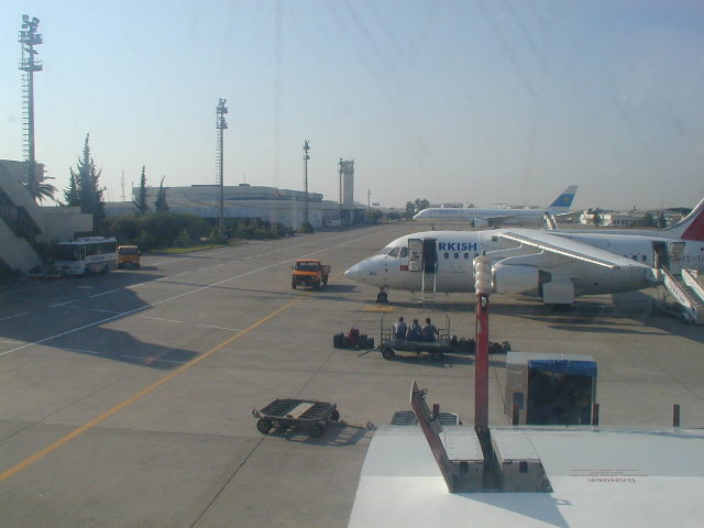 イスタンブール離陸直後(左),日本を昼に立ち,経由地のパリを夕方立ち,そしてイスタンブール到着は深夜でした.さらにイスタンブールから国内航空でアンタルヤに向かったわけですが,その離陸は朝.初めての海外で無謀にもイスタンブールで夜明かししたわけで…….