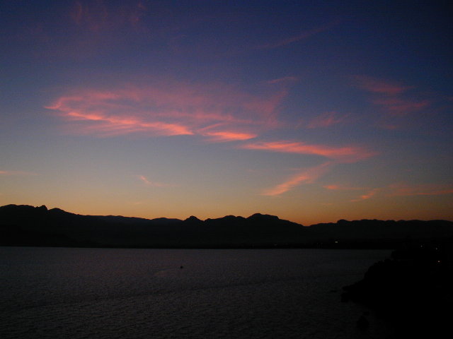 朝焼けに映える山々.ちなみに夜明けは現地時間の6時過ぎ.そのお陰で毎朝こんな感じの風景が見れました.