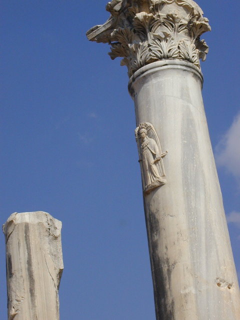 城砦にいたる道の途中の円柱には女神?の彫刻(中).なんか,えらく保存状態がよかったですね.