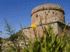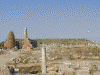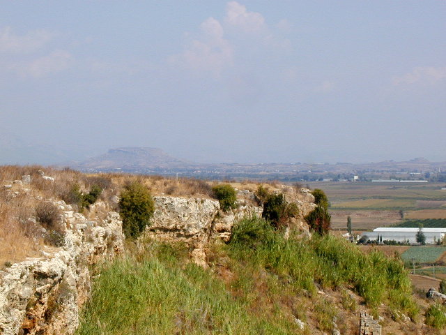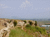 さて,ペルゲ城砦の頂上です(最左).なにやら小さい建物がありますが,中に入って見るとアーチ状の柱構造に,なにやらギリシア文字で書いてあります.なんだろう.ここから下を見下ろすと街の様子がよくわかります(中左).しかし,なんで斜めになってしまったんだろう.ちょっと哀しい.ところで,ここから山側を見ると別の城砦らしき地形が見えます(中右).気分は未来のドーム都市.こことあそこと仲が悪かったら大変だろうなぁ,等と思ったり.ちょっと降りたところから,さっきまでいた場所を見てみると,城砦の様子がよく判ります(最右).昔はすごかったんだろうなぁ.
